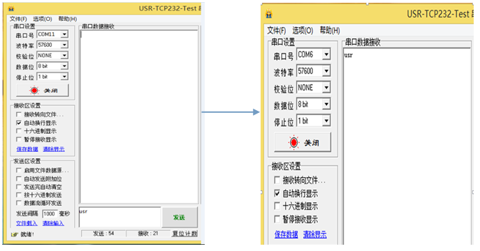 打開串口通信助手,將串口參數(shù)設(shè)置成與從設(shè)備USR-BLE100串口參數(shù)一致如