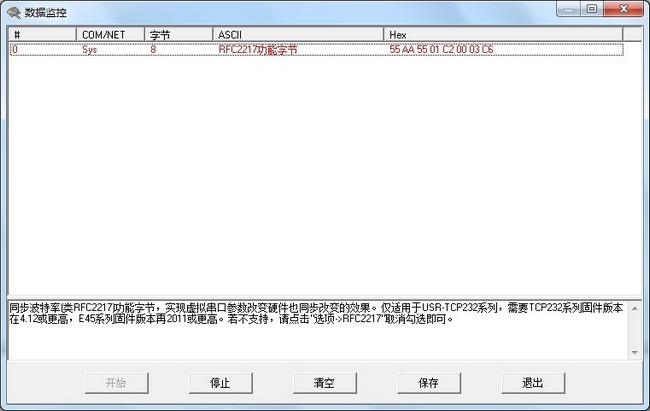 8個字節(jié)數(shù)據(jù)包為我公司特有功能“類RFC2217同步波特率”。實(shí)現(xiàn)虛擬串口狀態(tài)改變,對應(yīng)連接的串口服務(wù)器串口參數(shù)也同步改變(僅適用于我公司的串口服務(wù)器)