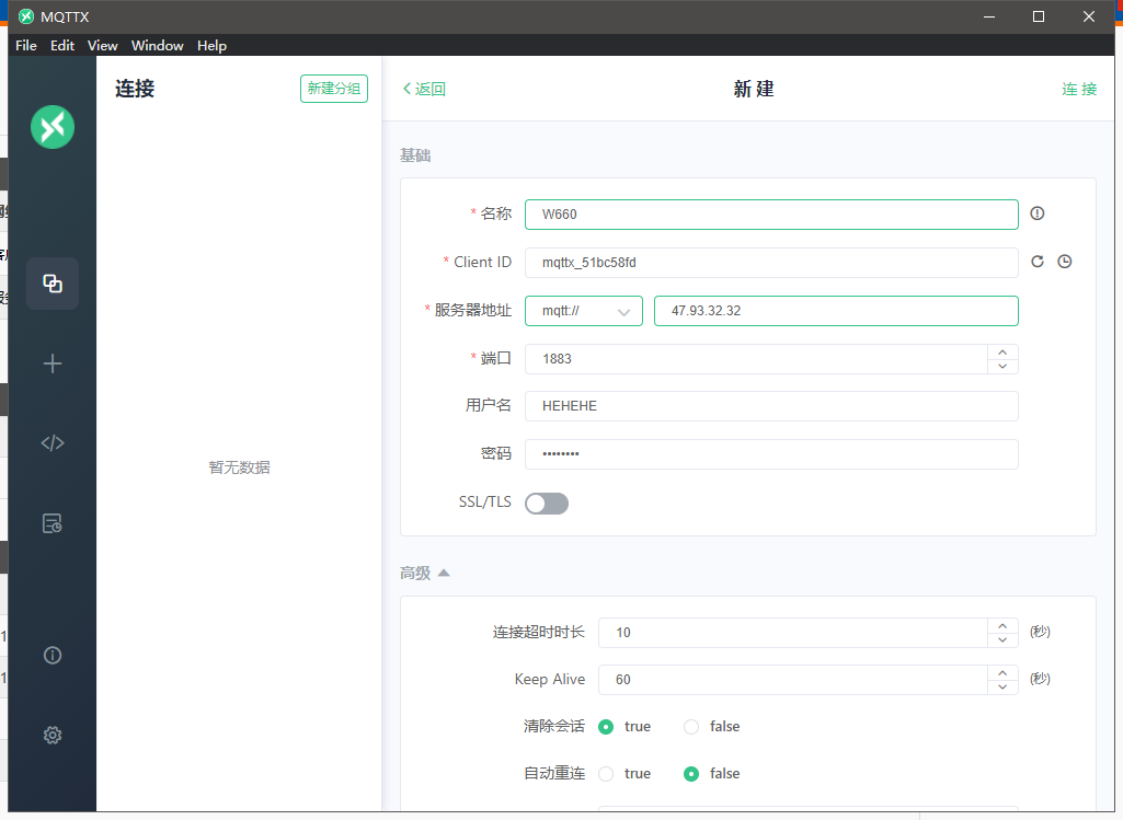 在電腦端,下載并打開mqttx軟件,點(diǎn)擊新建連接。