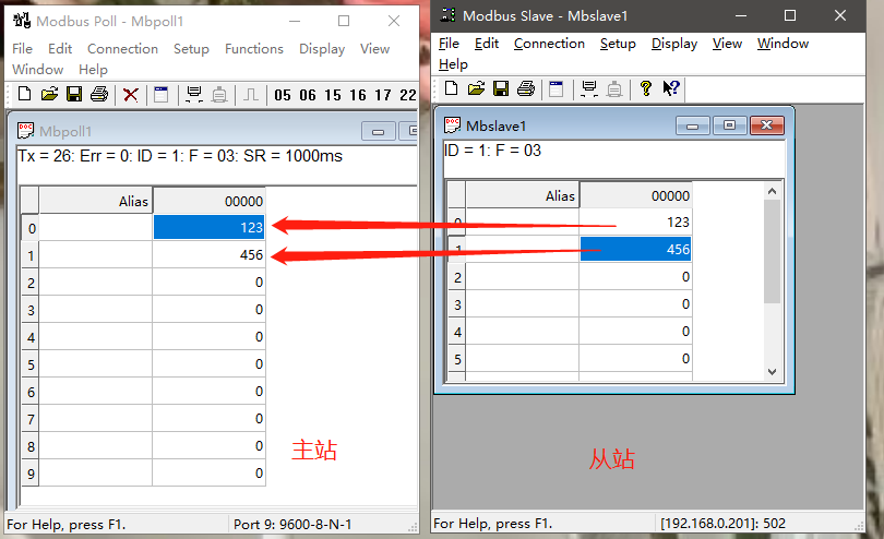 安裝并打開modbus slave軟件,用來模擬網(wǎng)口從站設(shè)備。設(shè)置本地ip:192.168.0.201,本地端口:502 安裝并打開modbus poll軟件,用來模擬串口主站設(shè)備。調(diào)用電腦設(shè)備管理器中生成的com口,本案例使用com9。