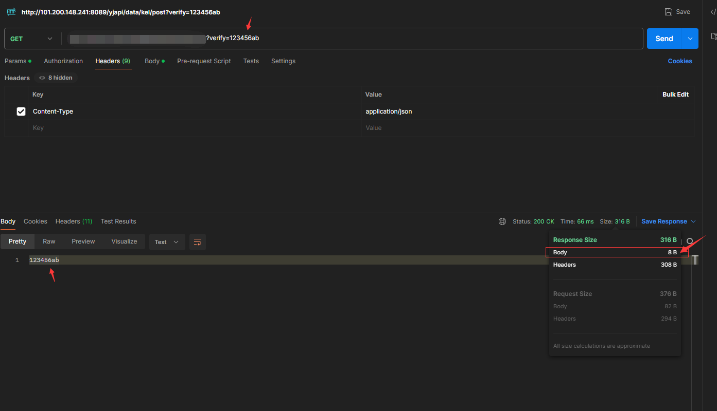 將填寫的URL復制進postman后面+?verify=123456ab 藍色的8個字節(jié)可隨意更換測試