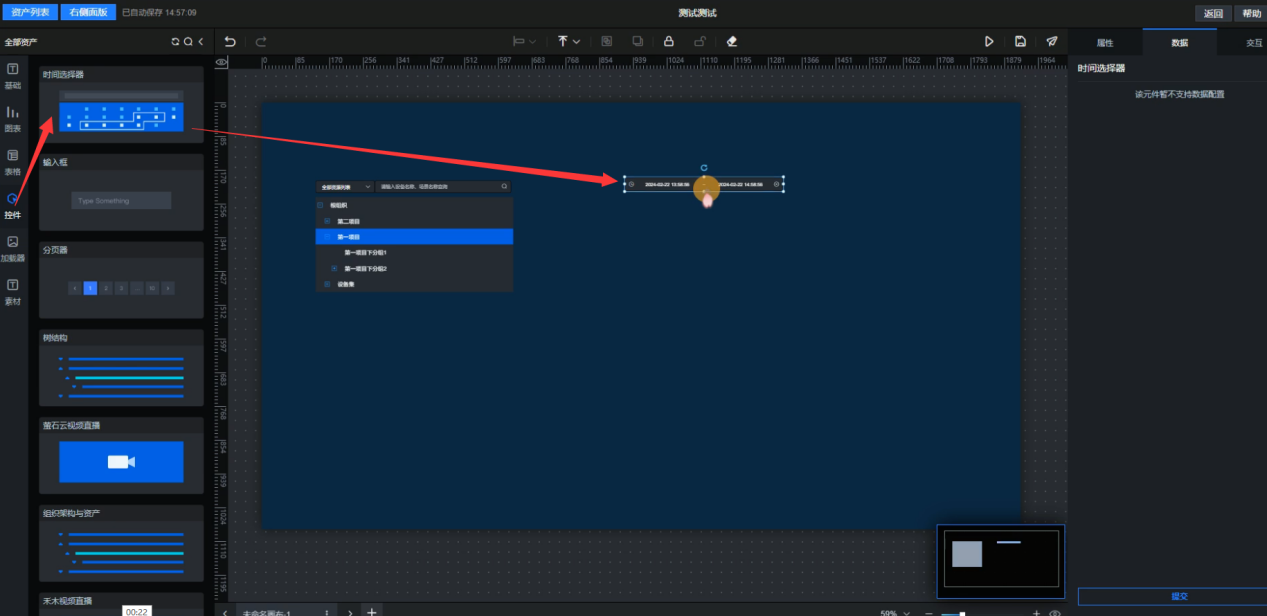 2、點擊左側(cè)控件欄,找到“時間選擇器”并拖進畫布