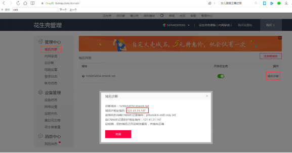4、 有些客戶軟件不支持域名只能輸入IP,這個(gè)時(shí)候可以在域名列表的域名診斷里確定域名指向的IP是多少,直接連接IP和端口即可,這個(gè)IP一般不會變,如果改變重新診斷一下就知道了。