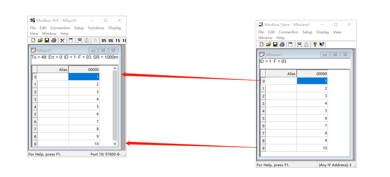 用MODBUS SLAVE軟件改變數值,MODBUS POLL就可以讀取到數據,還可以監(jiān)控數據。