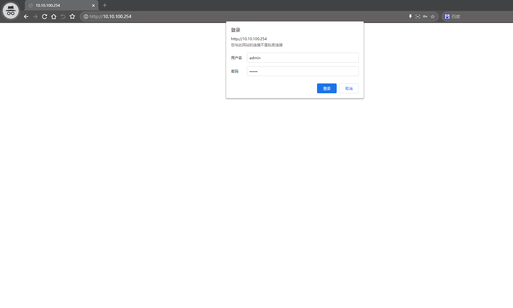 使用USR-WIFI232-B2默認IP,10.10.100.254,在瀏覽器輸入登錄USR-WIFI232-B2內置網頁,登錄名是admin,登錄密碼admin。