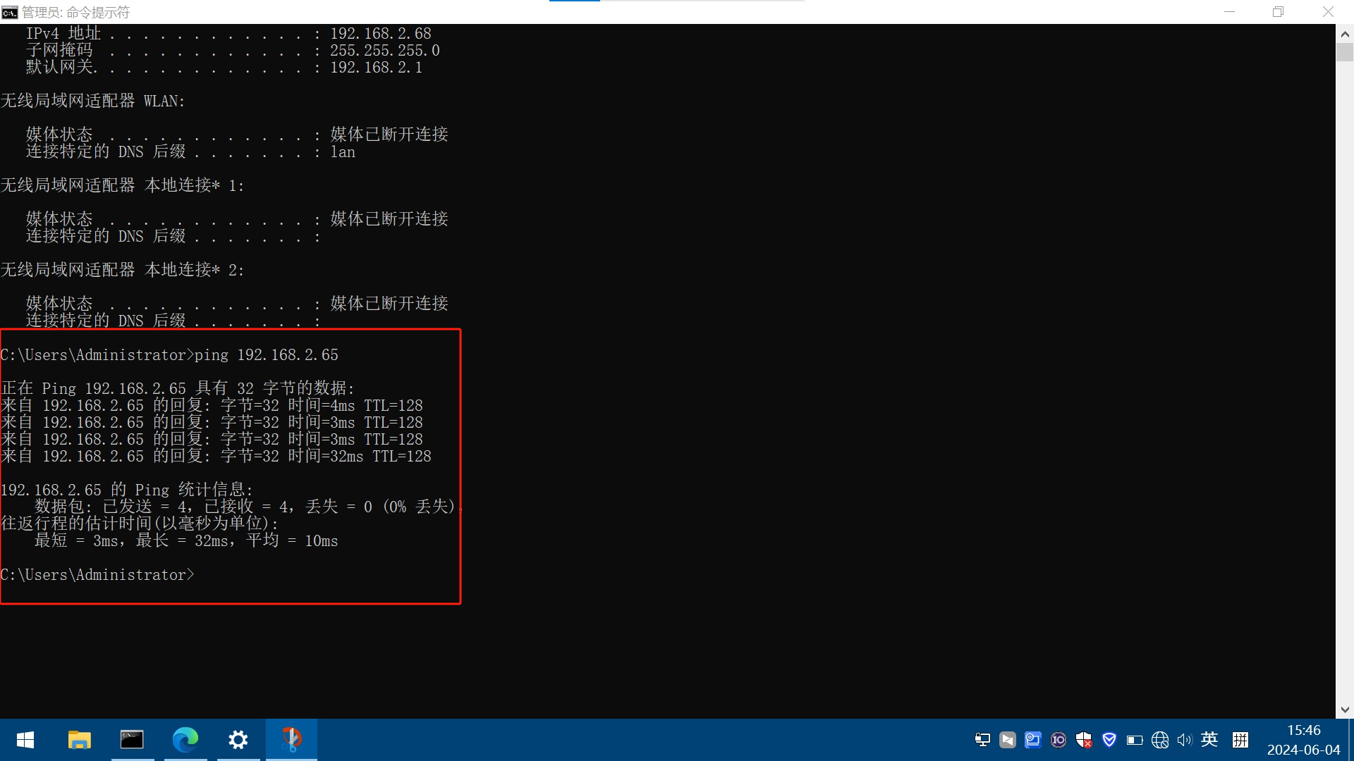 電腦1和電腦2之間進(jìn)行ping測試以及TCP連接數(shù)據(jù)交互測試。