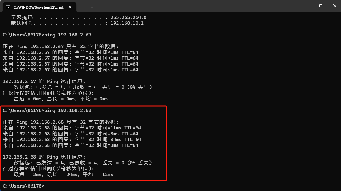 將電腦2IP設(shè)置為192.168.2.67,子網(wǎng)掩碼255.255.255.0,網(wǎng)關(guān)192.168.2.1。