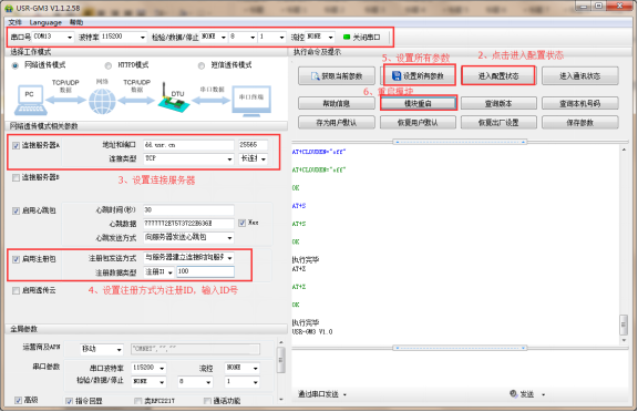 1:GPRS-DTU設(shè)置軟件設(shè)置連接D2D服務(wù)器和注冊(cè)ID的方法。