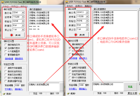 串口軟件連接GM3。需要遠(yuǎn)程采集串口設(shè)備的數(shù)據(jù),無需搭建公網(wǎng)服務(wù)器,用戶計(jì)算機(jī)無需連接互聯(lián)網(wǎng)。利用USR-D2D轉(zhuǎn)發(fā)服務(wù)器,轉(zhuǎn)發(fā)串口設(shè)備通過DTU設(shè)備傳輸?shù)臄?shù)據(jù)到另一臺(tái)DTU。實(shí)現(xiàn)遠(yuǎn)程透明串口傳輸數(shù)據(jù),無需改變用戶原有的軟件和環(huán)境,即可實(shí)現(xiàn)遠(yuǎn)程通信。