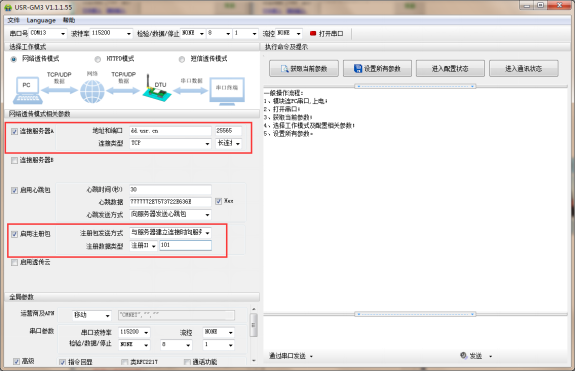 GPRS模塊默認(rèn)波特率為115200. 設(shè)備波特率要和串口設(shè)備設(shè)備波特率統(tǒng)一。GPRS-DTU連接串口設(shè)備。