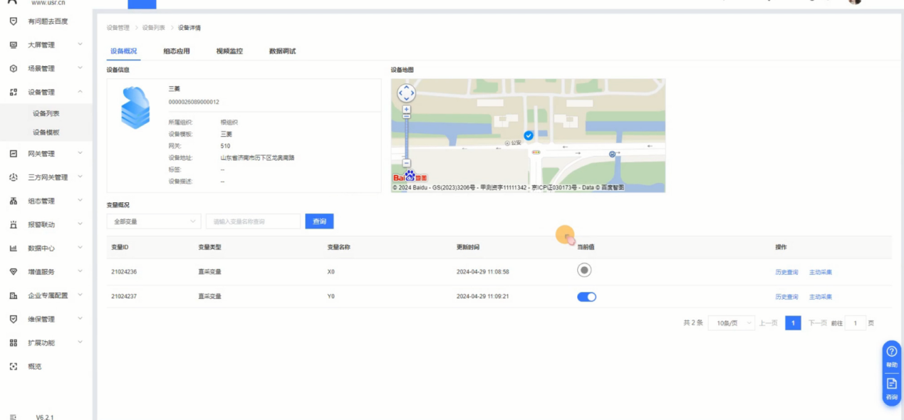1、平臺正常讀取數(shù)據(jù)后,進行透傳操作(組態(tài)步驟可參考另一篇案例:PLCNET510連接三菱串口plc有人云組態(tài)數(shù)據(jù))