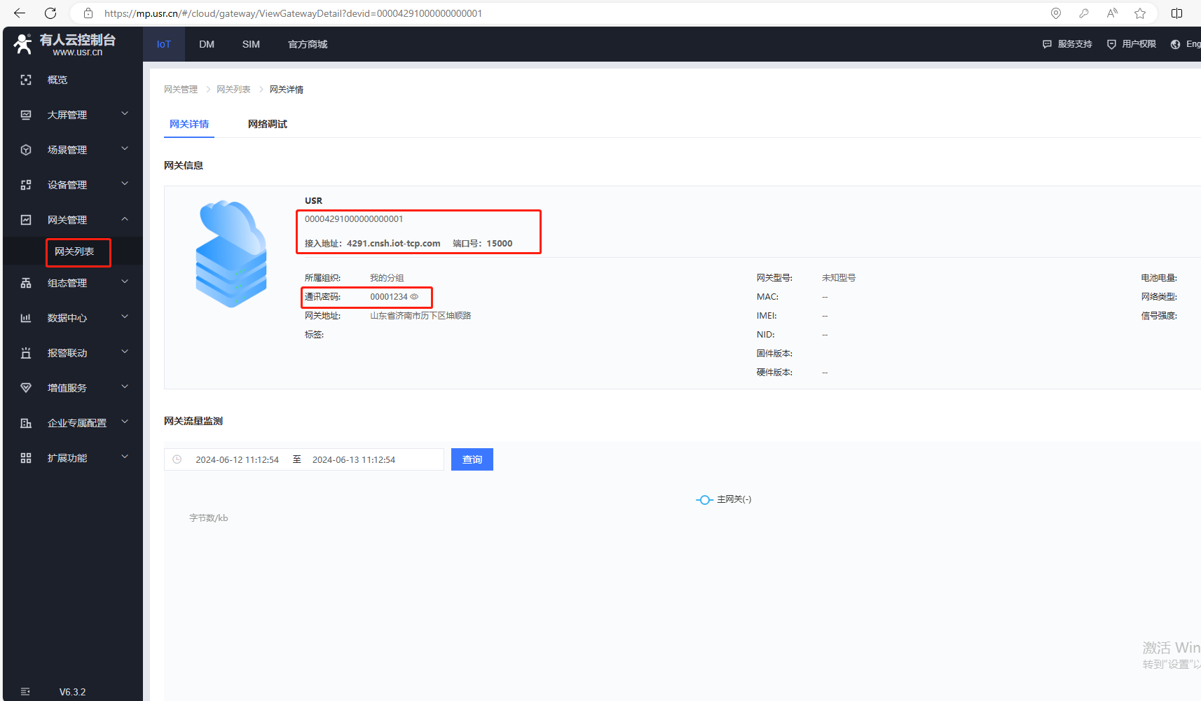 目標(biāo)IP/域名:4291.cnsh.iot-tcp.com,遠(yuǎn)程端口15000