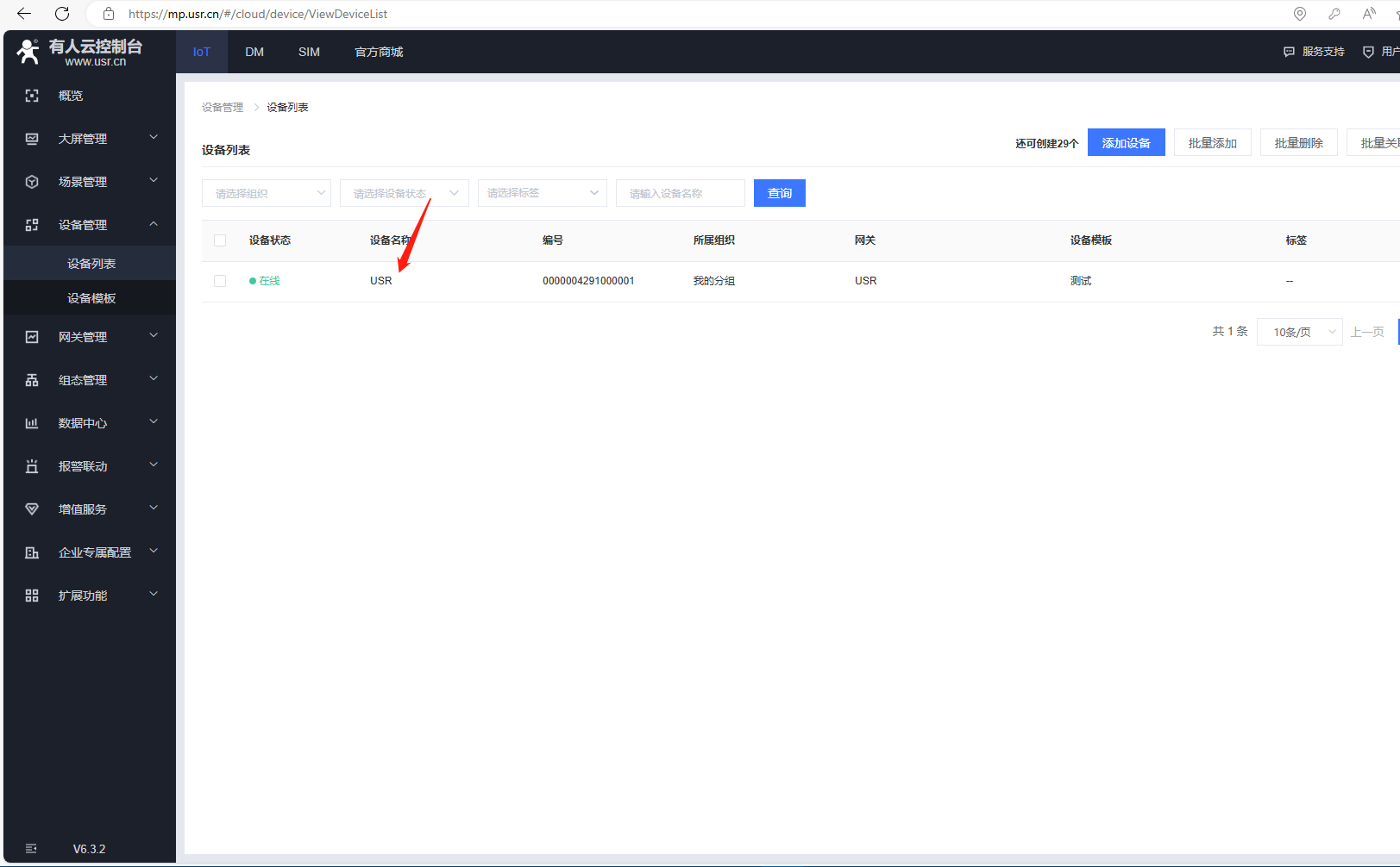 (4)添加設(shè)備,點(diǎn)擊設(shè)備管理,點(diǎn)擊設(shè)備列表,點(diǎn)擊添加設(shè)備。
