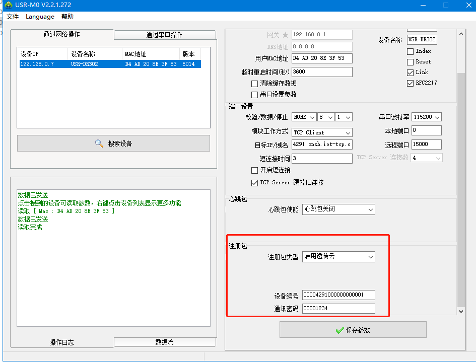 USR-DR302連接有人云(V6)云端輪詢(xún)示例
