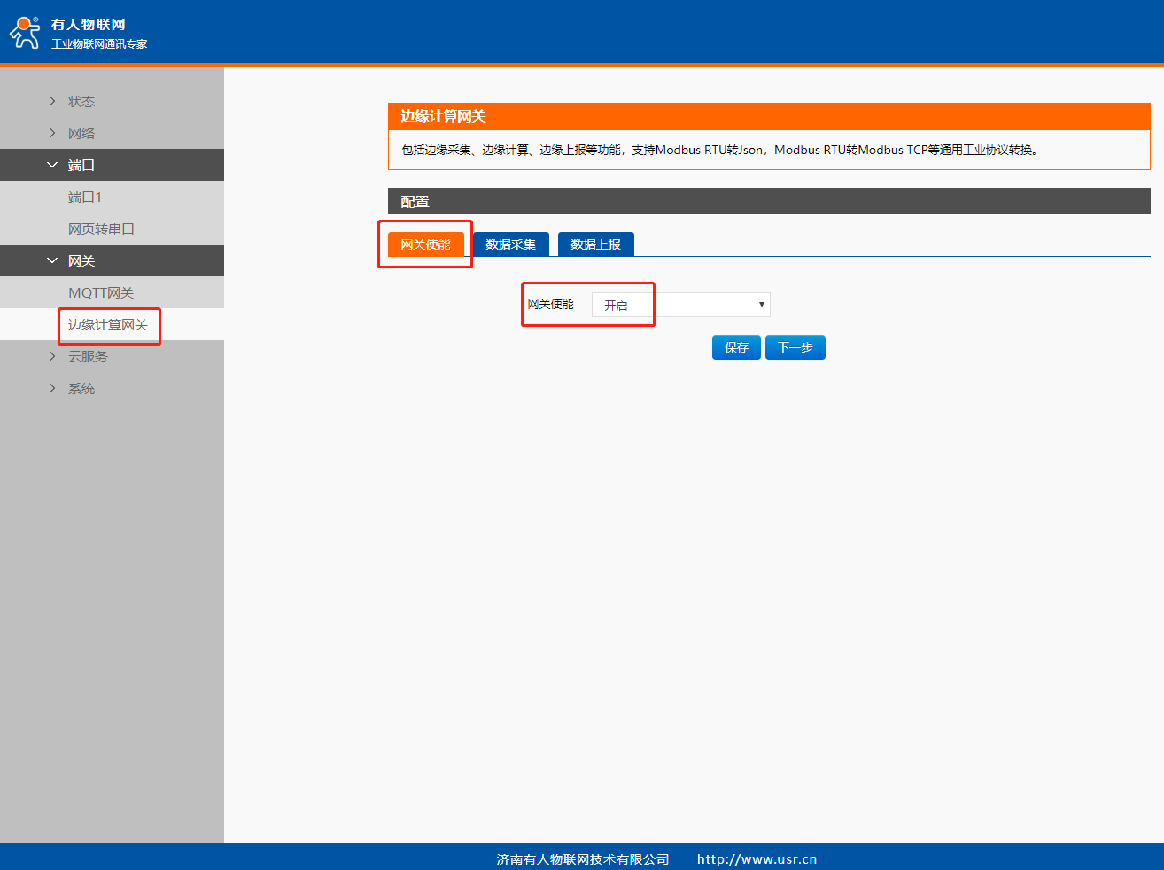 (1)點擊網(wǎng)關,點擊邊緣計算網(wǎng)關,點擊網(wǎng)關使能,網(wǎng)關使能開啟,點擊保存。