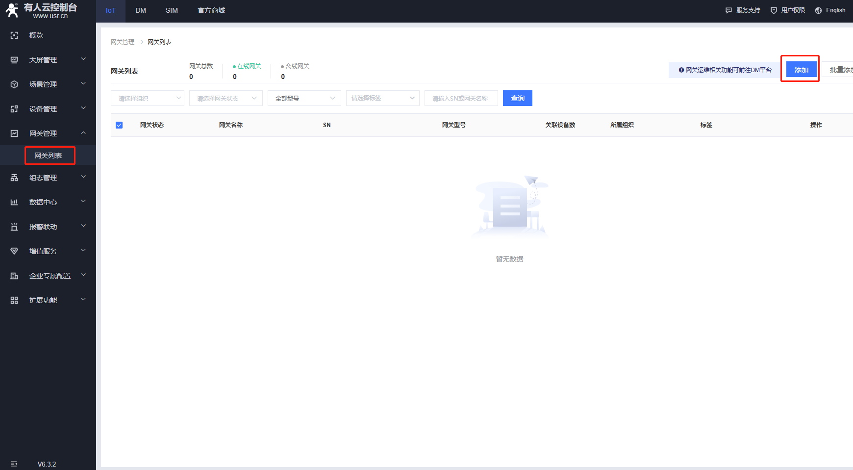 (1)打開(kāi)網(wǎng)關(guān)管理下拉,點(diǎn)擊網(wǎng)關(guān)列表,點(diǎn)擊添加。