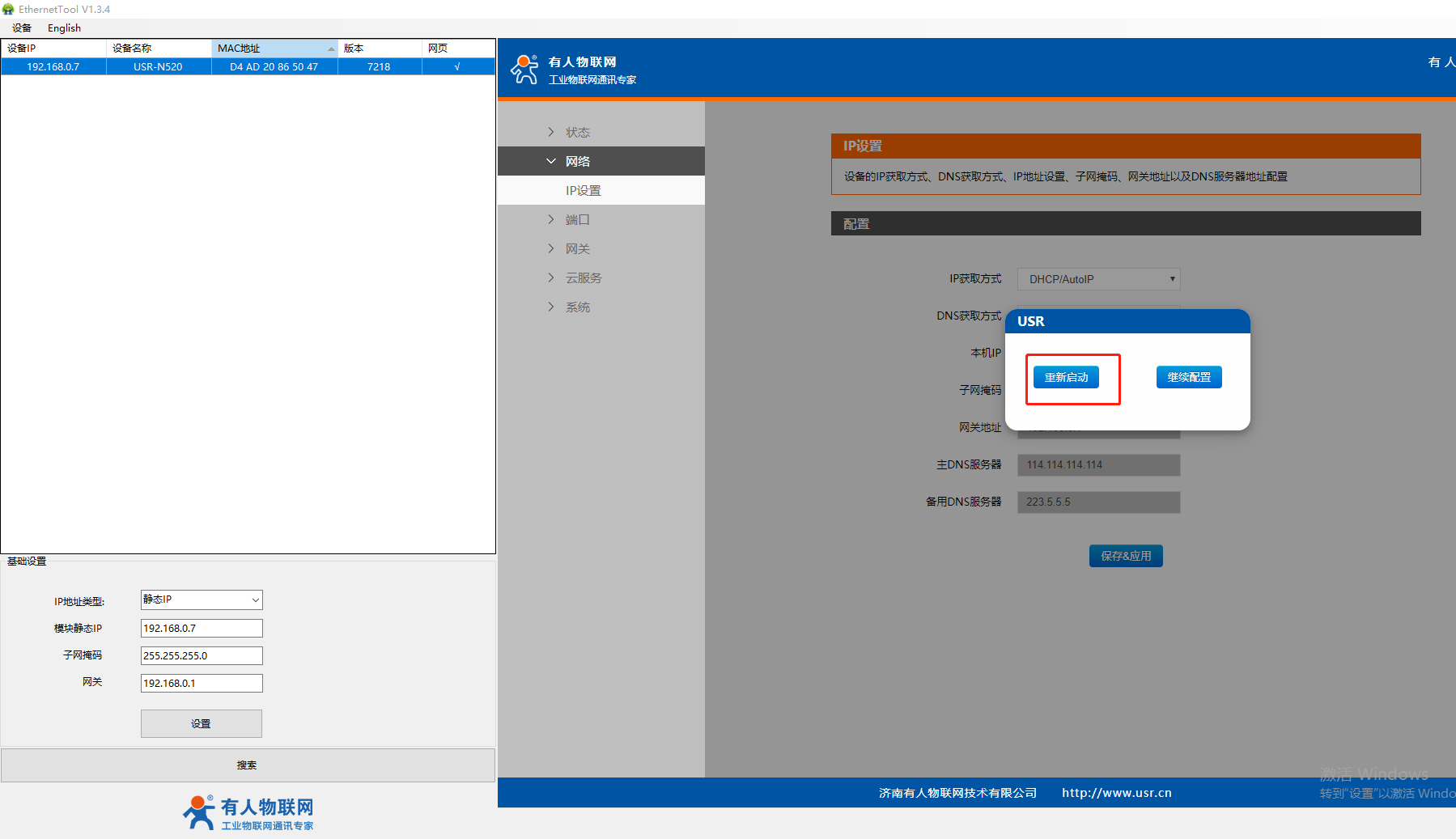 USR-N520-H7 設(shè)置軟件官網(wǎng)下載鏈接:http://m.lifj.com.cn/Download/383.html