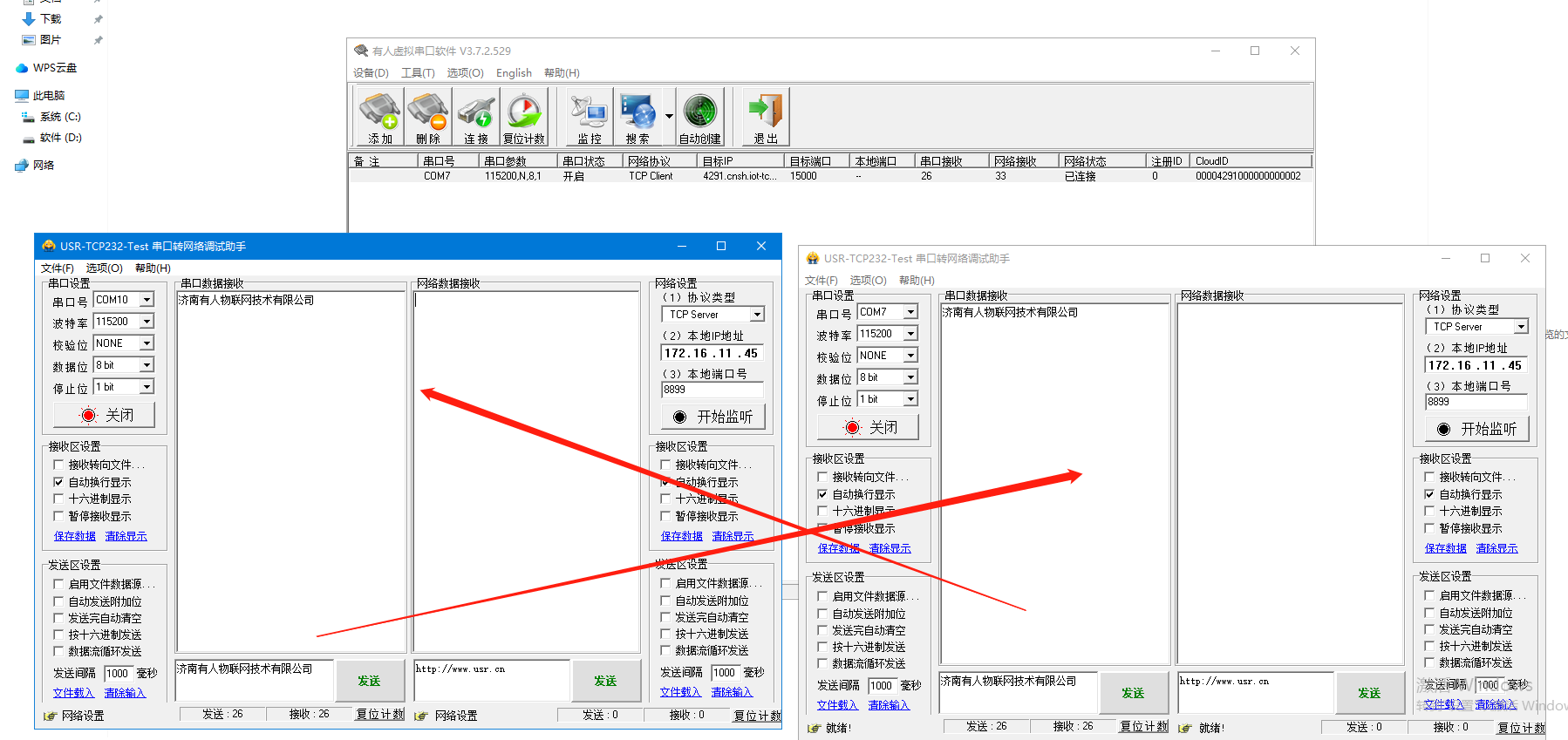 USR-N510-H7有人云和虛擬串口軟件(V3)一對一通訊示例
