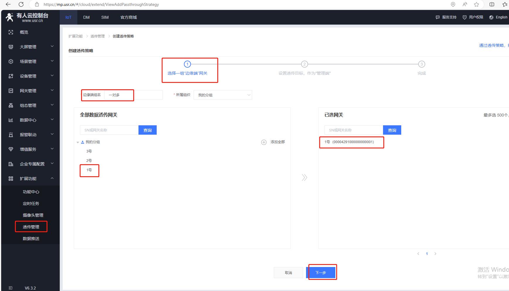 2、選擇邊緣端網(wǎng)關(guān),添加的USR-N510 1號(hào)設(shè)備