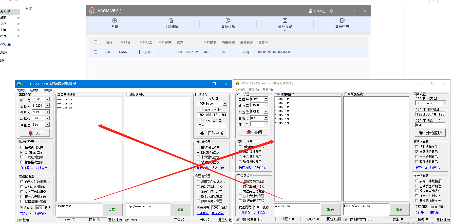 USR-K5上云和虛擬串口軟件(V5版本)一對一通訊示例