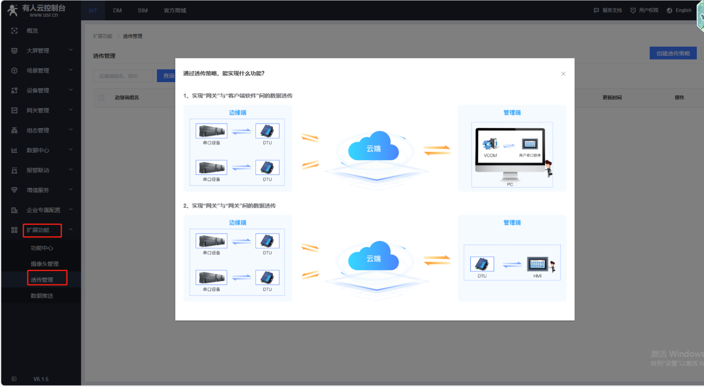 1、擴展功能,透傳管理,創(chuàng)建一個透傳策略