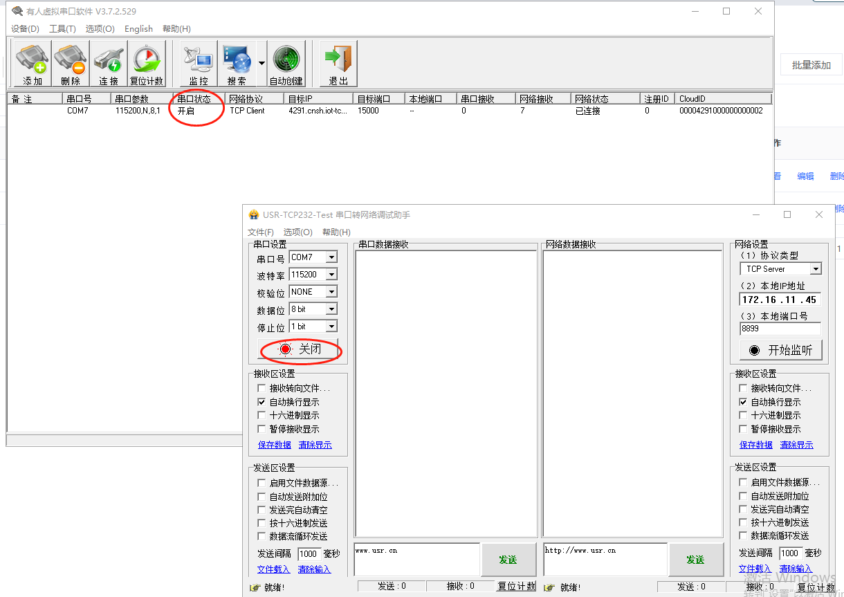 USR-WIFI232-B2連接有人云(V6)和虛擬串口(V3)一對(duì)一通訊示例