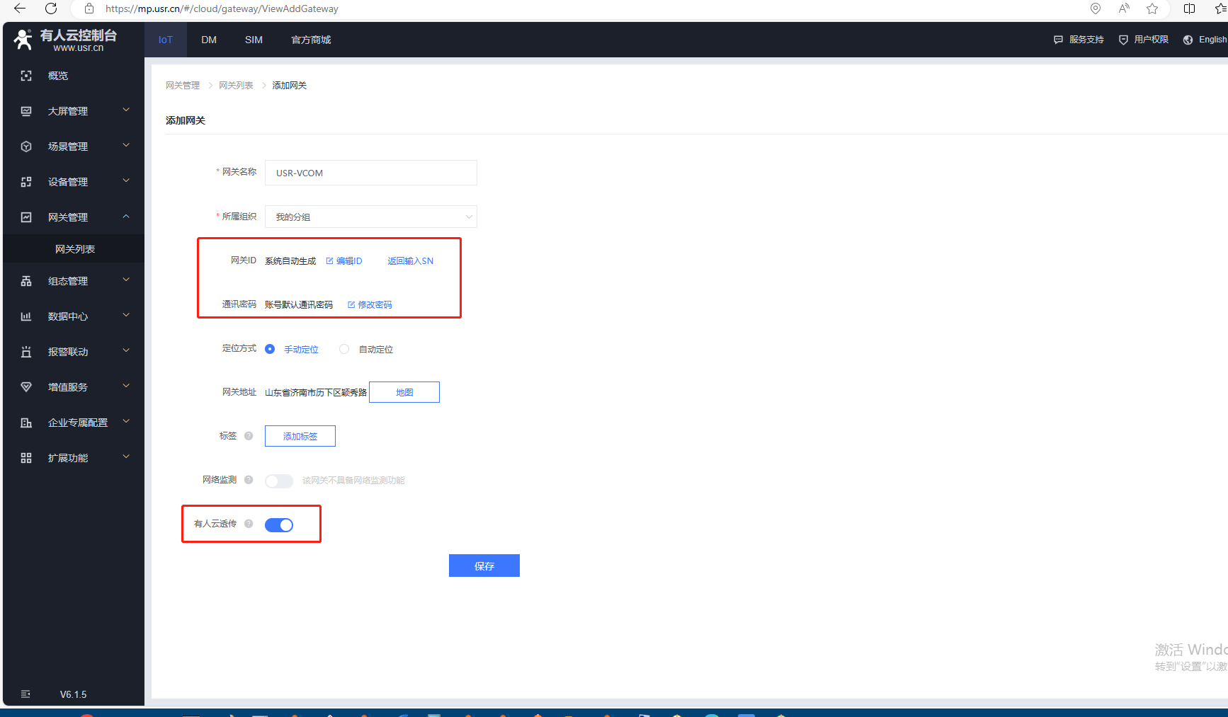 添加完,有人云,網(wǎng)關(guān)列表,USR-VCOM在線。
