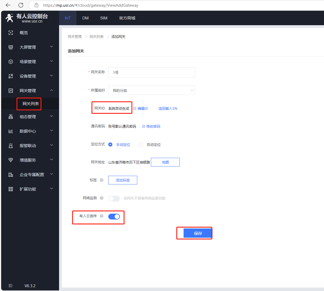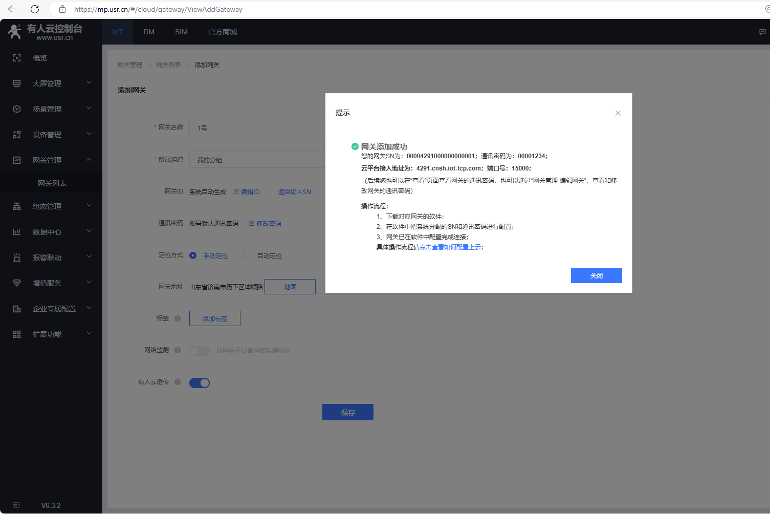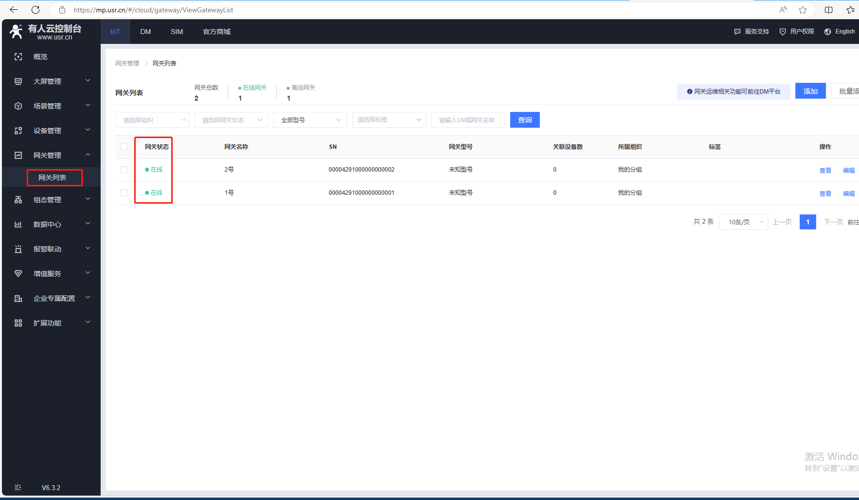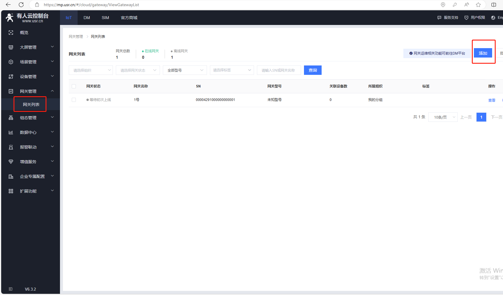 2、選擇邊緣端網(wǎng)關(guān),添加的1號USR-WIFI232-B2