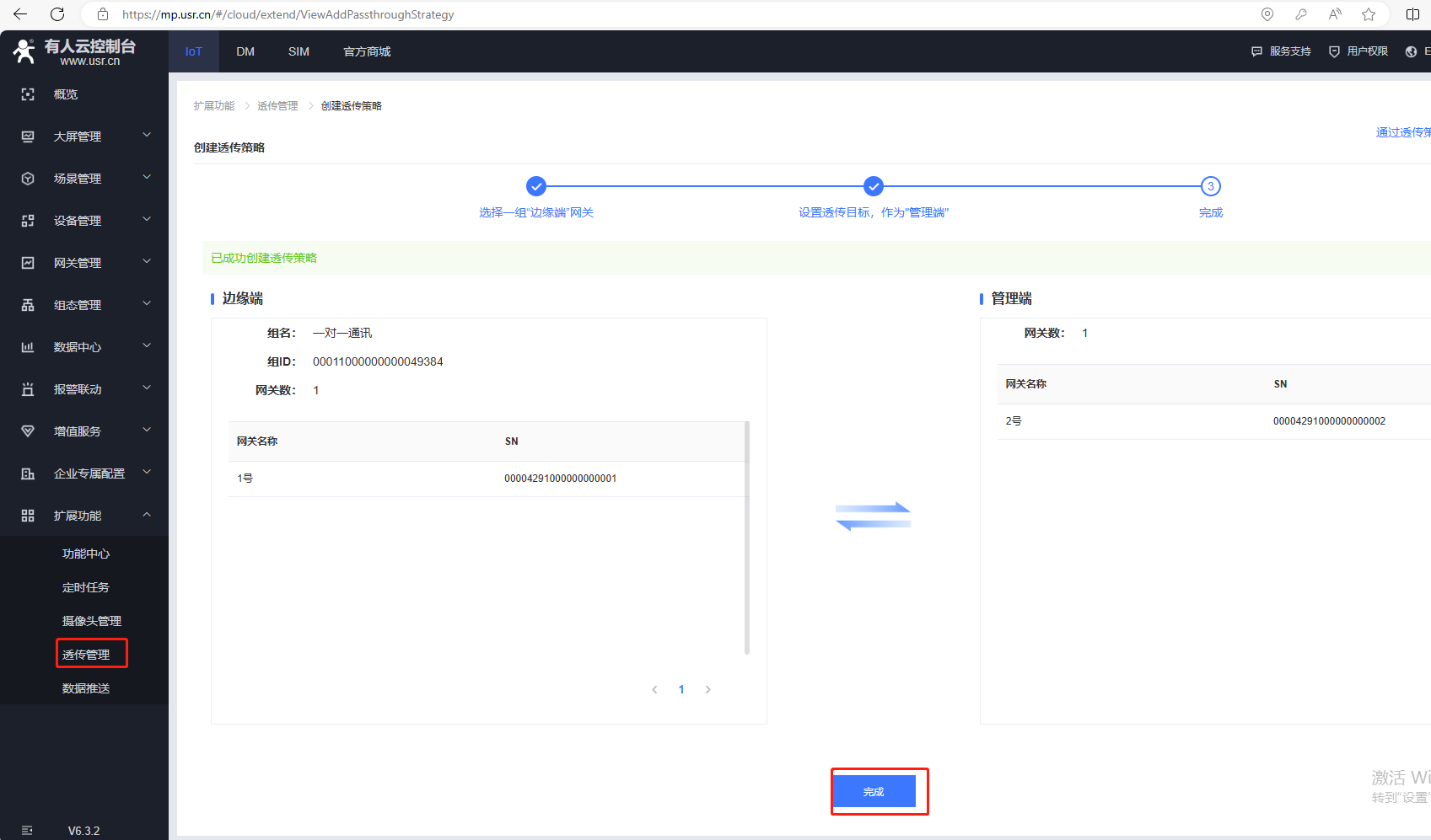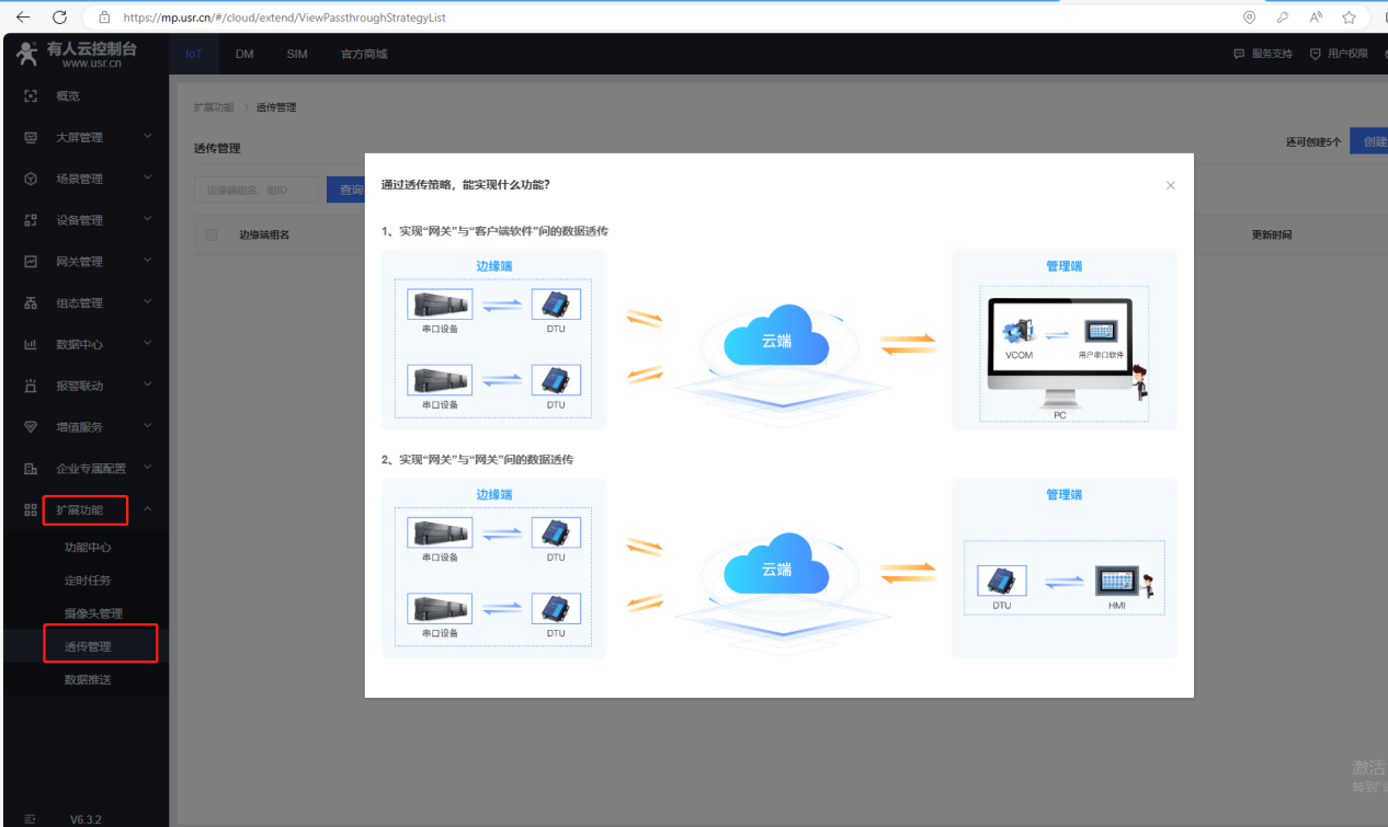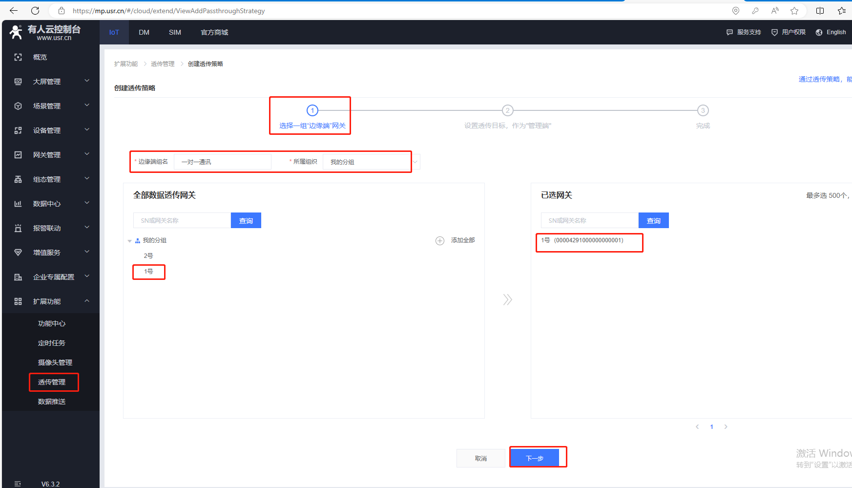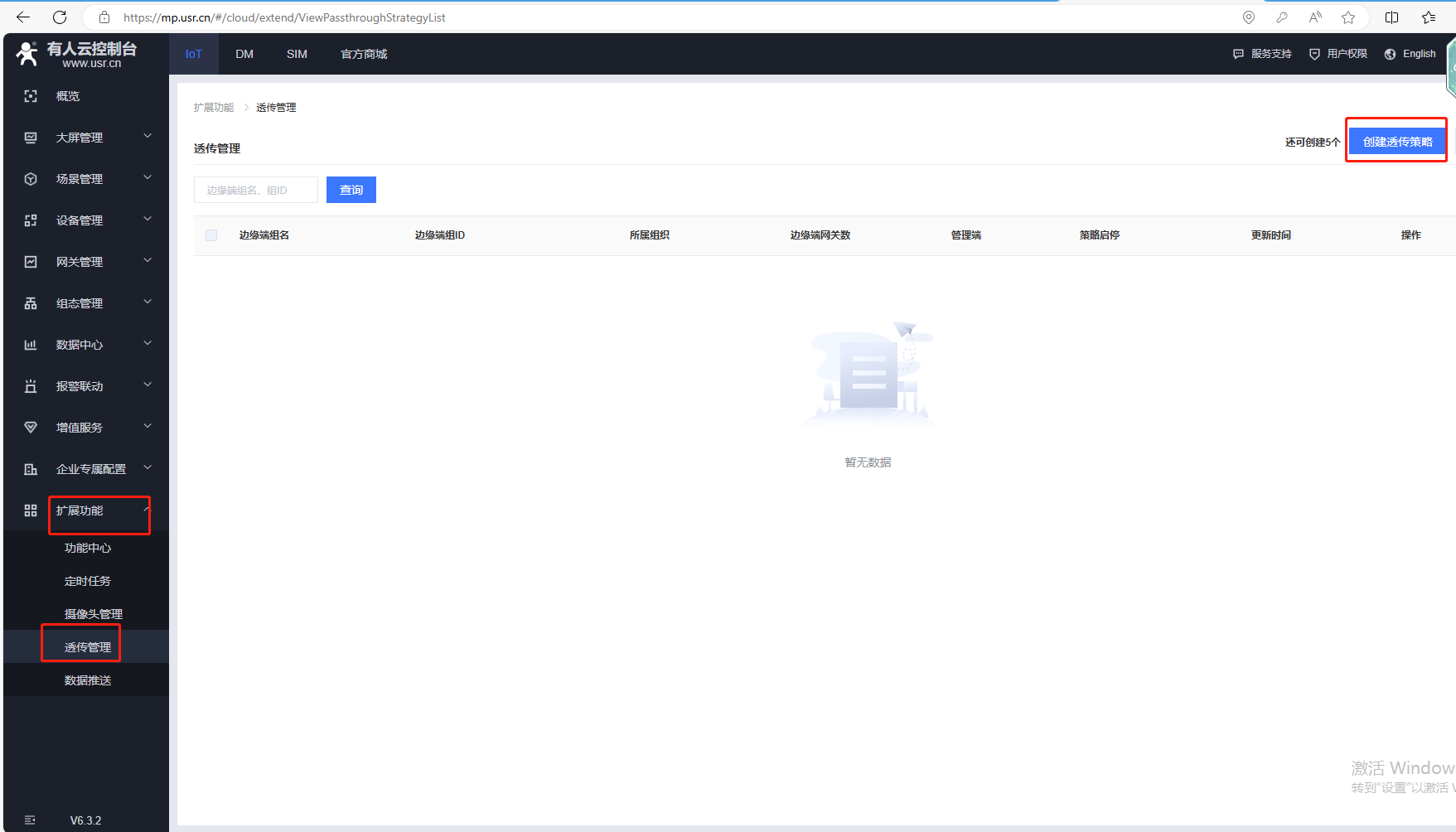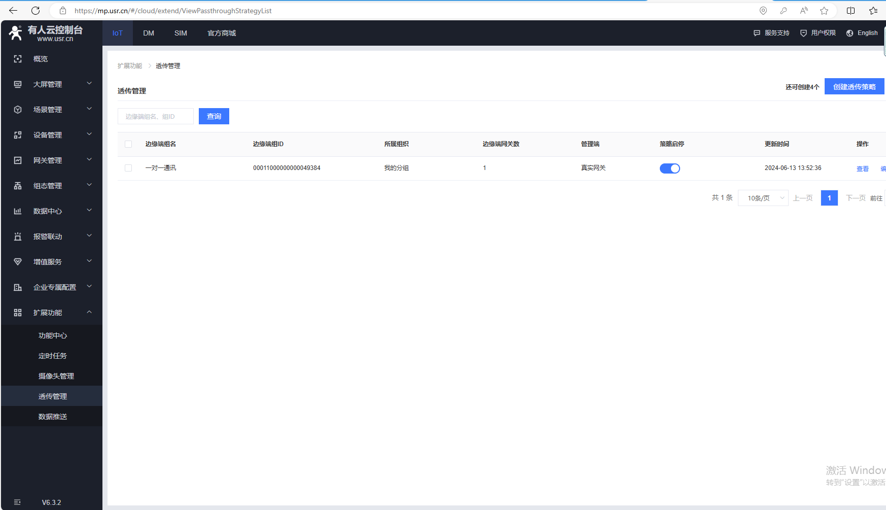 1、擴展功能,透傳管理,創(chuàng)建一個透傳策略