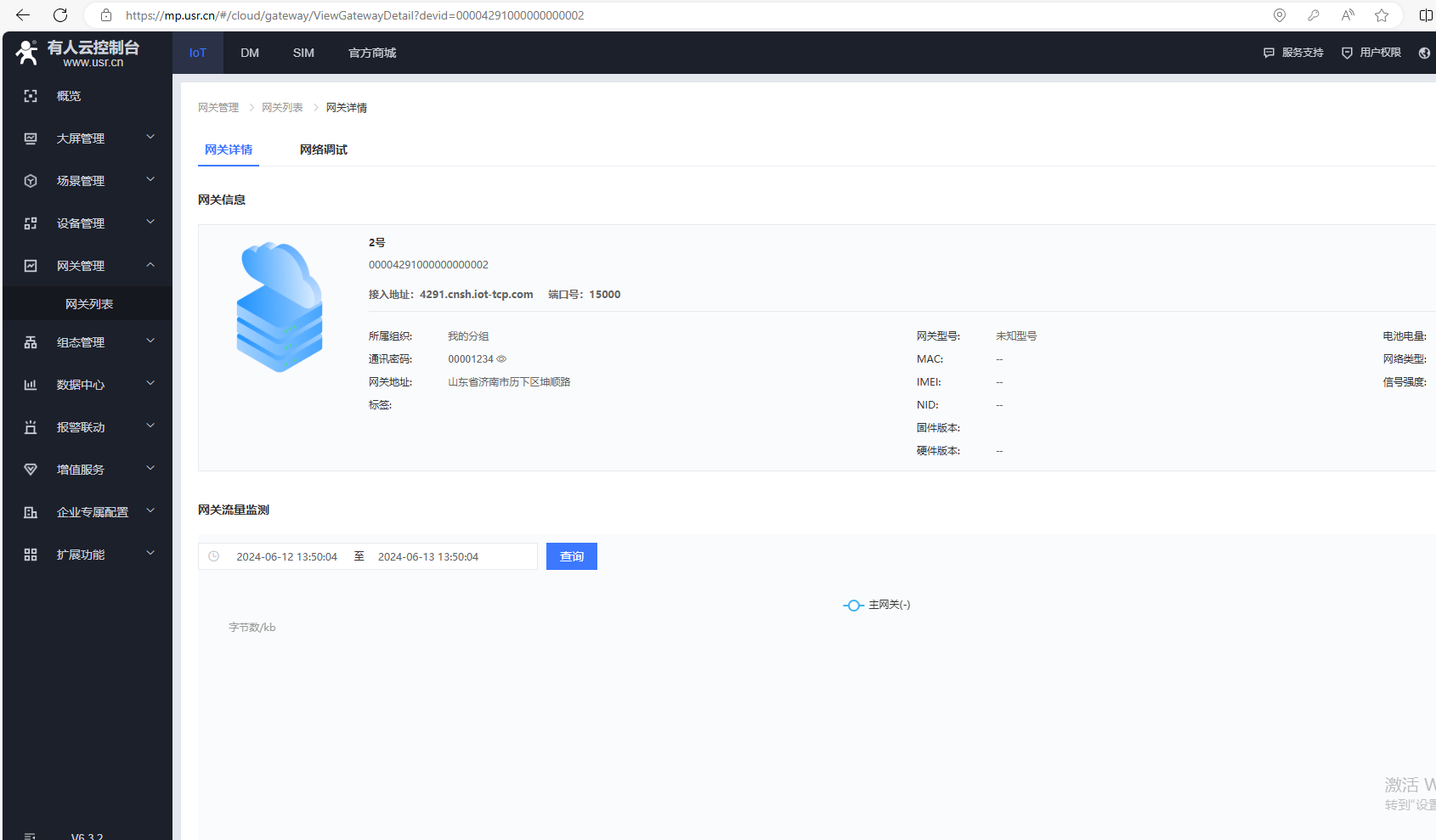 云平臺接入地址為: 4291.cnsh.iot-tcp.com; 端口號: 15000;