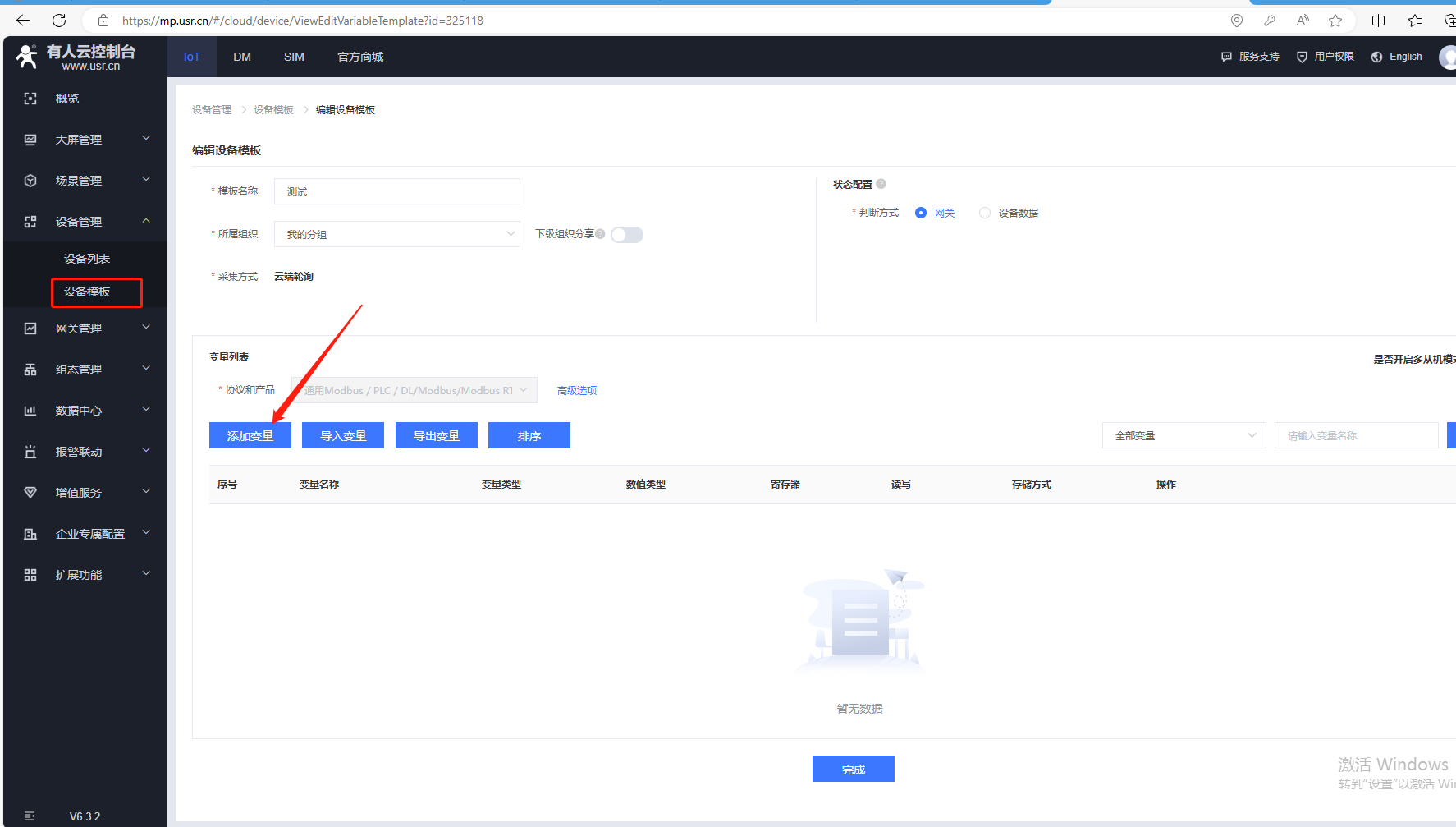 (7)添加變量,點(diǎn)擊設(shè)備管理,點(diǎn)擊設(shè)備模板,點(diǎn)擊編輯。