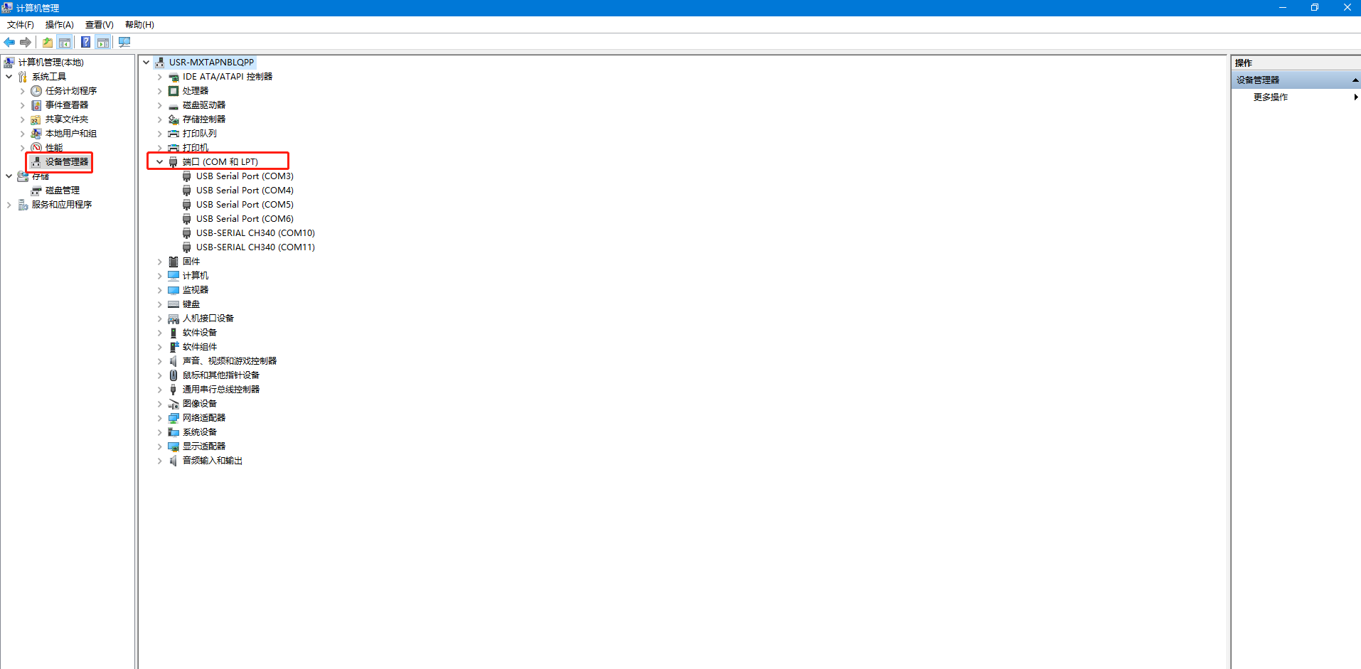 電腦鼠標(biāo)點(diǎn)擊計(jì)算機(jī)管理,右擊,點(diǎn)開(kāi)設(shè)備管理器,點(diǎn)擊端口,查看接USR的USB-RS232串口線COM口號(hào),COM3。