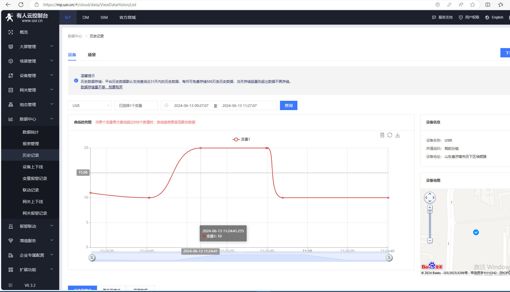 還可以利用有人云的數(shù)據(jù)調(diào)試功能,查看有人云的數(shù)據(jù)收發(fā)是否正常。