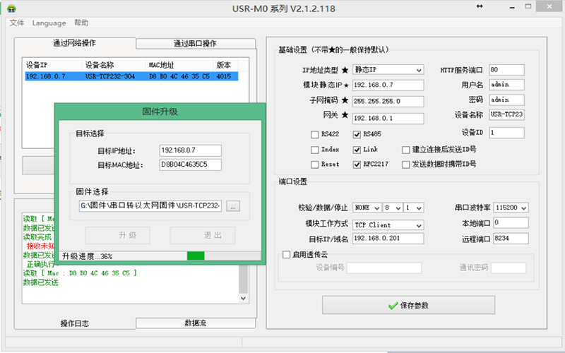 1、將M0系列的產(chǎn)品,加入路由器中,升級使用的電腦也加入同一個路由,使用配置軟件搜索M0。