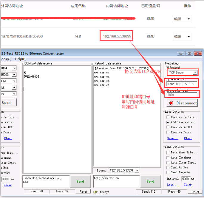 8.使用有人Test調(diào)試助手軟件測試GPRS DTU串口到網(wǎng)絡(luò)數(shù)據(jù)收發(fā)情況。