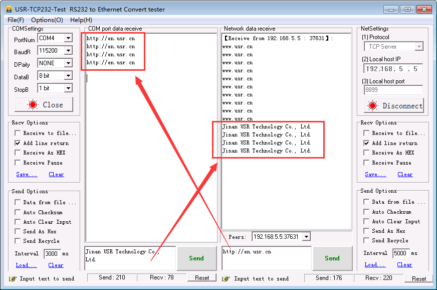 10.使用Test調(diào)試助手軟件測試GM3串口到虛擬COM口數(shù)據(jù)收發(fā)情況。