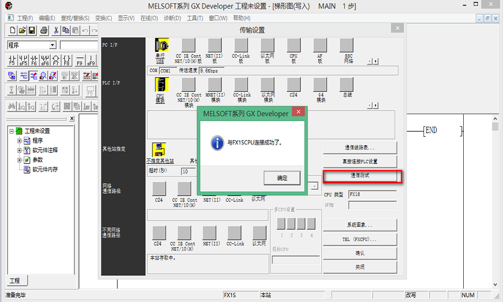 十一、點(diǎn)擊“通信測(cè)試”,會(huì)顯示與PLC連接成功,然后點(diǎn)擊“確定”
