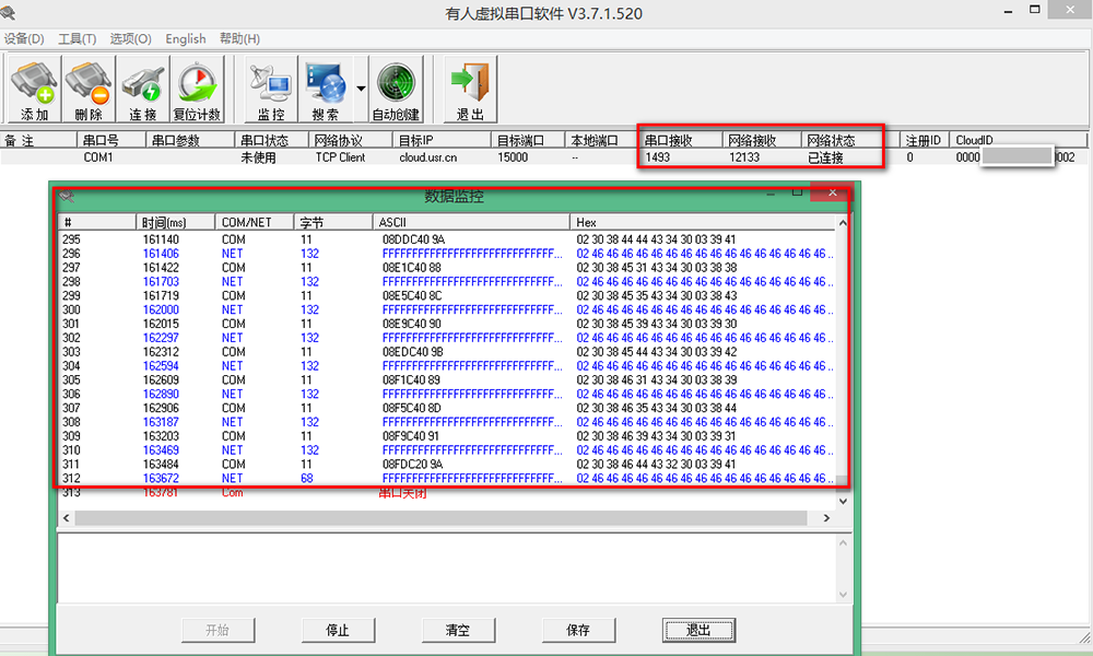 十三、最后會(huì)顯示已完成,可以看上傳的程序,及虛擬串口監(jiān)聽到的數(shù)據(jù)