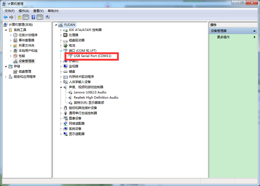 五、在設(shè)備管理器中查看端口信息,確定N668串口使用的串口號,如下圖所示電腦端口號為COM11。