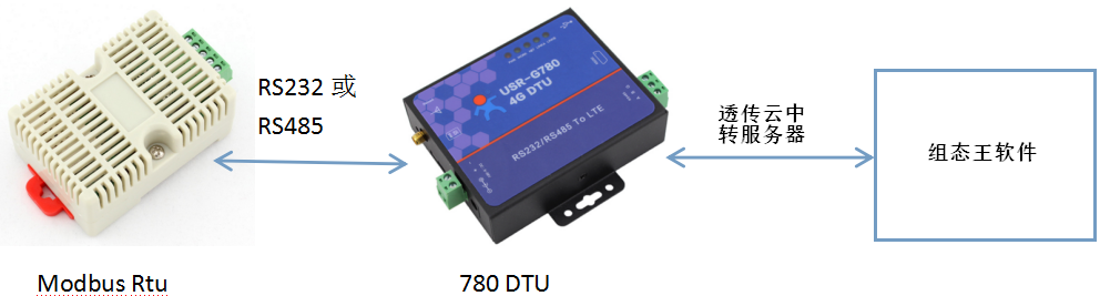 1.1硬件需求:MODBUS RTU設(shè)備(USR-WSD-2溫濕度傳感器),DTU(USR-G780)。