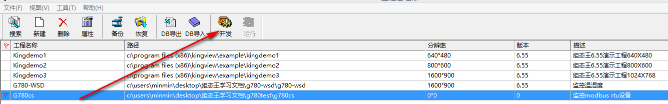 4.2 將新建設(shè)置為當(dāng)前工程,點(diǎn)擊“開(kāi)發(fā)”