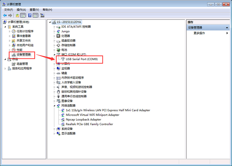 4> 查看W600在電腦上對應(yīng)的COM號,在設(shè)備管理器中可以查看,這里是COM9