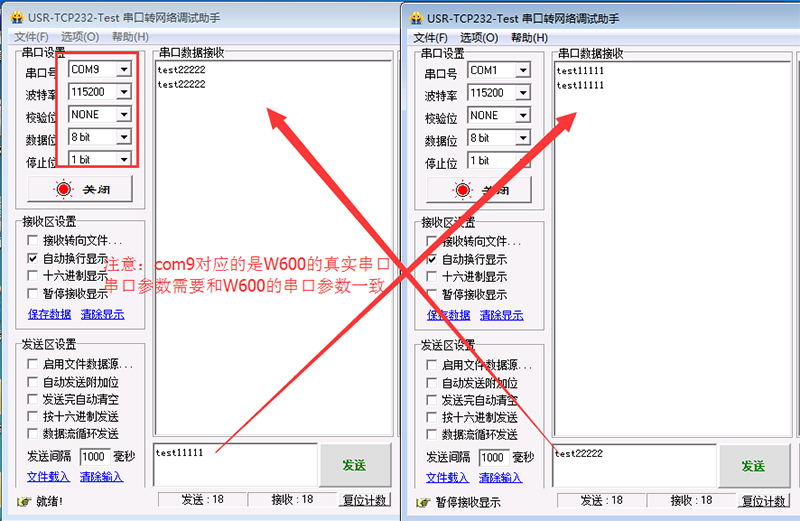 3、W600配合虛擬串口進行數(shù)據(jù)傳輸(用虛擬串口測試,需要斷開上面小黃人的網(wǎng)絡(luò)連接)