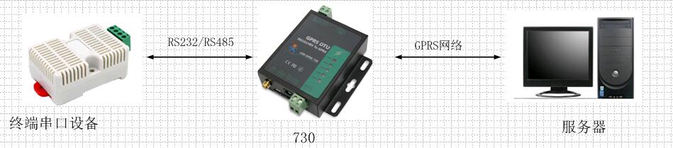 網(wǎng)絡(luò)拓撲結(jié)構(gòu): 終端串口設(shè)備發(fā)送數(shù)據(jù)--->730--->服務(wù)器