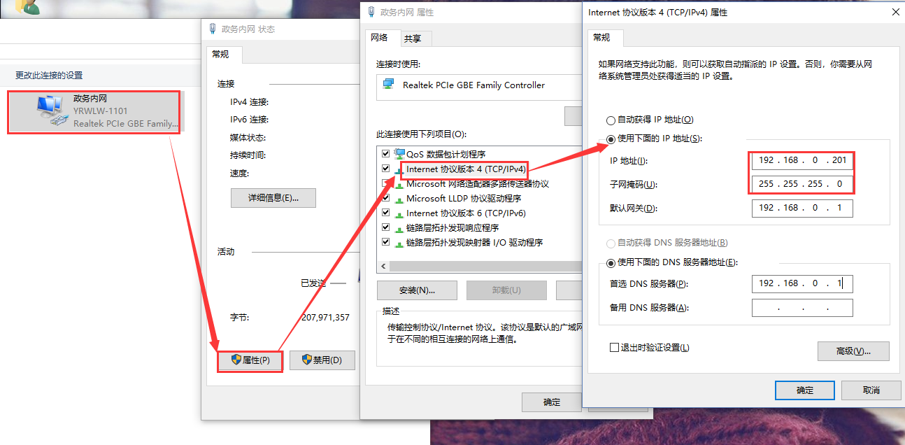 3.給電腦設置靜態(tài)IP,要與511的IP在同一個網(wǎng)段(511默認參數(shù)見表1)。