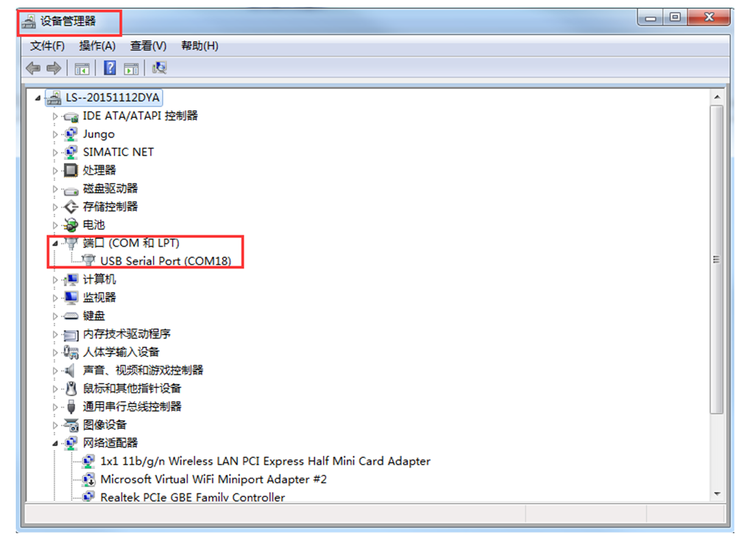 其中串口號(hào)可以在電腦的“設(shè)備管理器”中查看,見(jiàn)下圖;