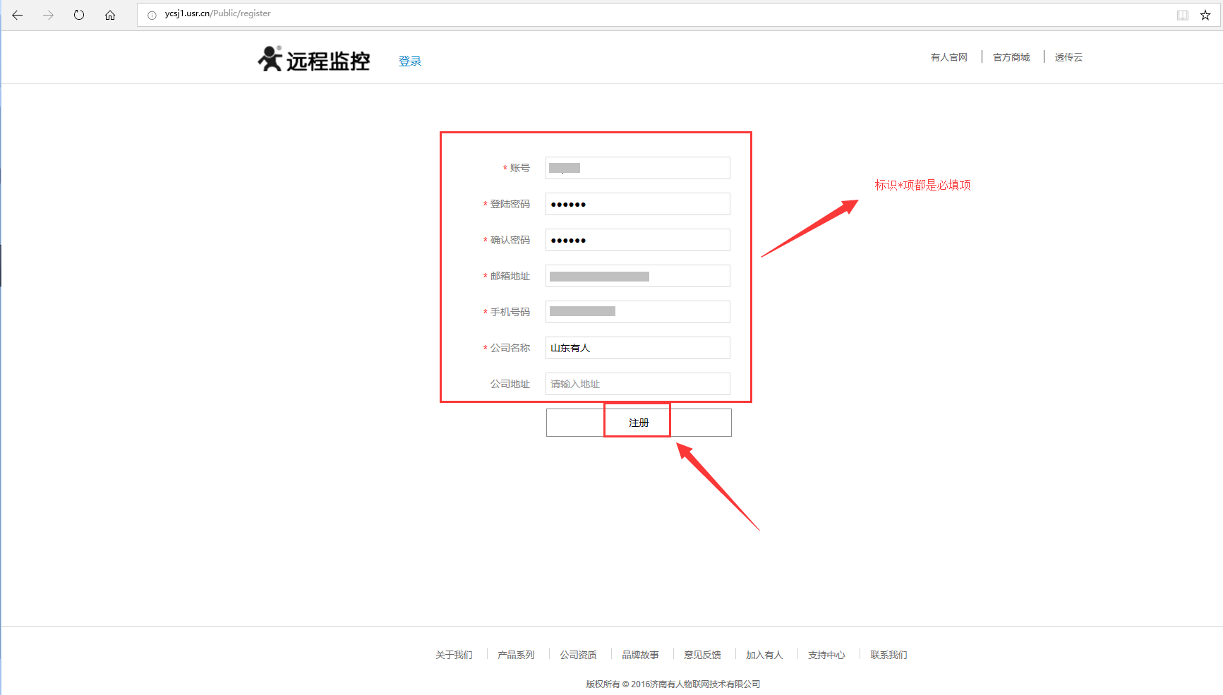 開(kāi)啟使用此功能之前,需要登錄http://ycsj1.usr.cn遠(yuǎn)程監(jiān)控后臺(tái)注冊(cè)賬號(hào),