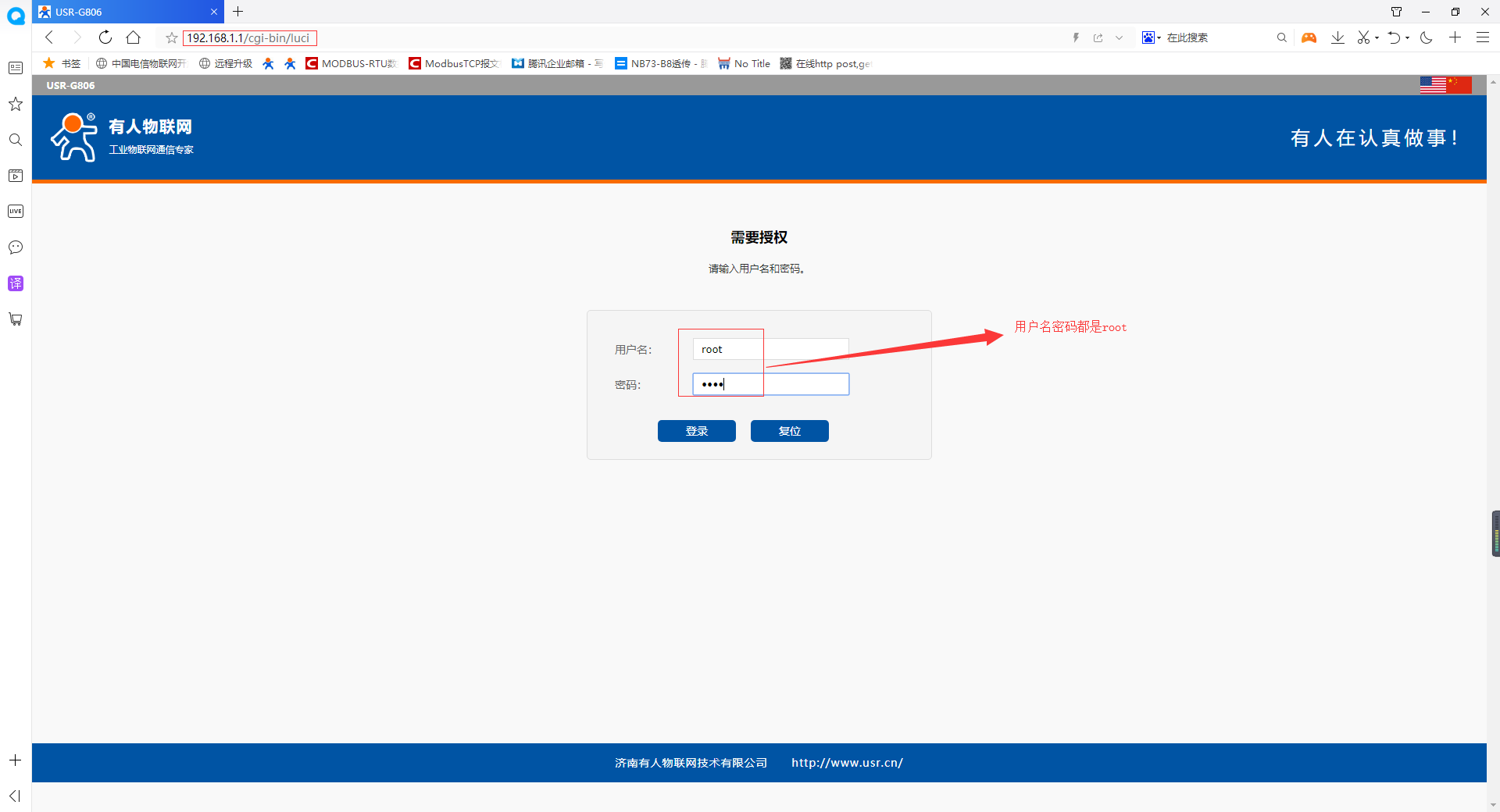 1、以上步驟完成后,打開(kāi)路由器的配置網(wǎng)頁(yè),出廠默認(rèn)地址是192.168.1.1 用戶名密碼均為root