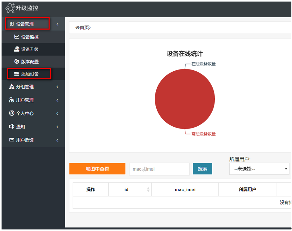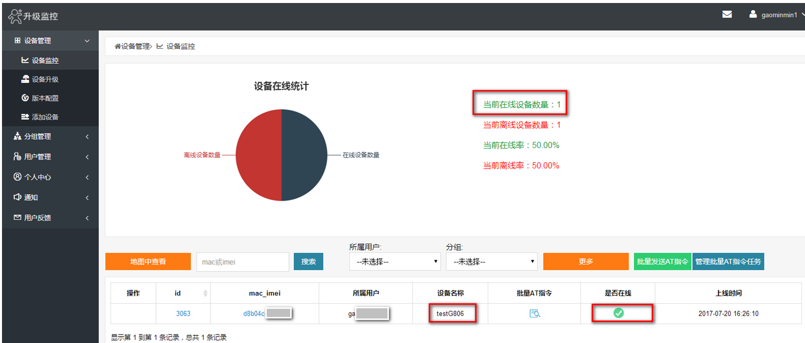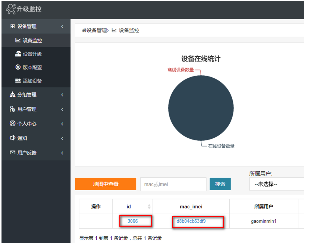 6、等待1分鐘左右,點(diǎn)擊“設(shè)備監(jiān)控”,在設(shè)備監(jiān)控界面,即可看到在線設(shè)備,如下
