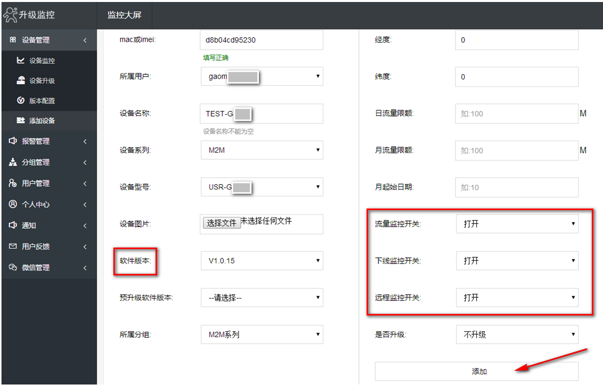 1)添加設(shè)備必須用MAC添加,不要用IMEI添加!MAC地址來(lái)源可以參看路由器外殼上的貼膜信息,或者是直接進(jìn)入配置網(wǎng)頁(yè),查看lan口MAC地址